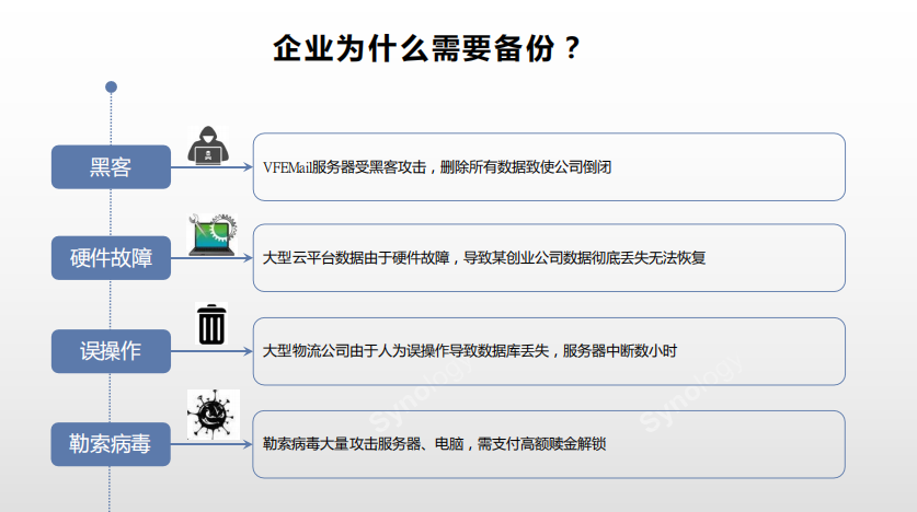 根據勒索軟件、病毒最終的勒索方式,有針對性的做預防措施。勒索方式主要是加密或破壞用戶數據。如果我們提前做好了備份,即使感染了病毒,也可以直接啟用備份,避免受影響。反病毒和反惡意軟件網絡防護產品雖然防護給力,但是未知網絡威脅發展太快,任何工具都無法提供100%防護。所以定時自動的數據備份是預防勒索病毒最基礎、最重要的方式之一。