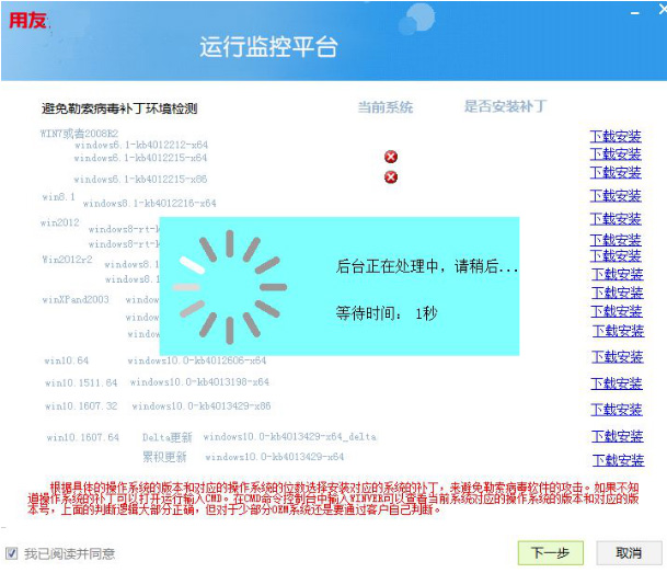 為了協助客戶預防和規避勒索病毒帶來的危害,U8產品研發部門快速開發了勒索病毒安全補丁檢查工具,通過工具,客戶可以了解自己服務器缺少哪些勒索病毒相關補丁,也可以在線下載安裝所需補丁,確保服務器安全。