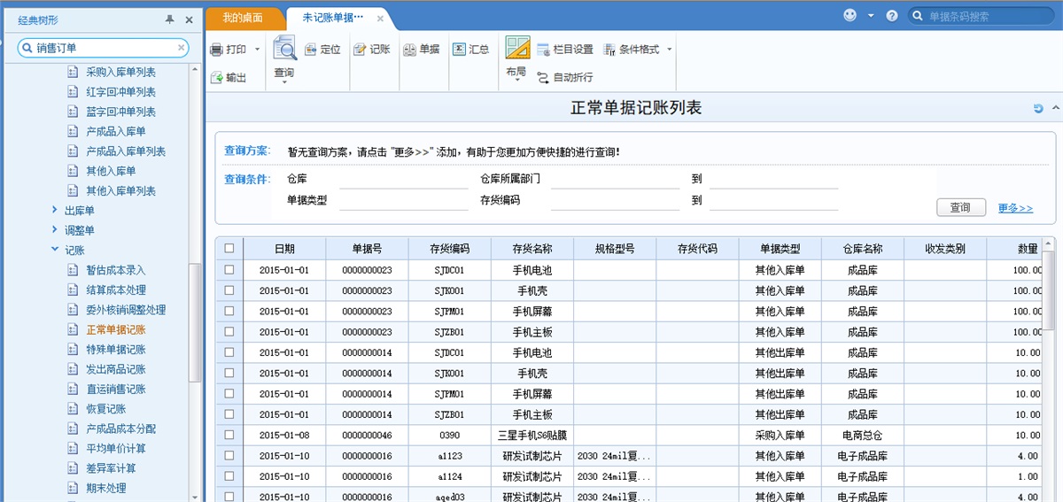 單據記賬用于將用戶所輸入的單據登記存貨明細賬、差異明細賬/差價明細賬,通過先進先出、后進先出、移動平均、個別計價這四種計價方式的存貨在單據記賬時進行出庫成本核算;全月平均、計劃價/售價法計價的存貨在期末處理進行出庫成本核算