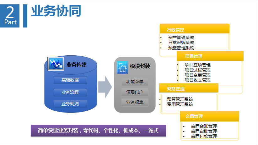 第二環(huán),是業(yè)務(wù)之間的協(xié)同,工作和業(yè)務(wù)又形成相互的融合。根據(jù)企業(yè)業(yè)務(wù)場(chǎng)景,為企業(yè)量身定制,覆蓋各個(gè)層面與領(lǐng)域。