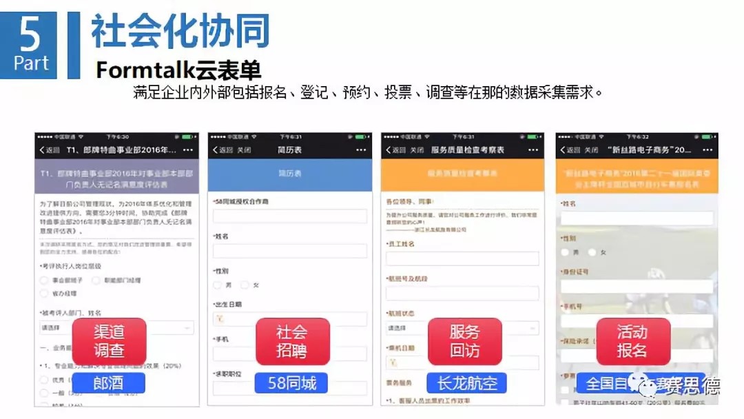 第五環(huán)是社會(huì)化協(xié)同。任何企業(yè)都要知道,客戶的第一反應(yīng)是什么,知道下游供應(yīng)商的隨動(dòng)是什么?與其他社交軟件打通,實(shí)現(xiàn)移動(dòng)辦公。